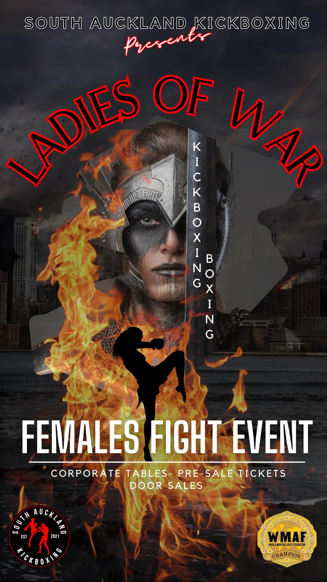 Ladies of War: first all-female event, sub-part of SAKB Promotions, we hope to provide grassroots talent from all over Aotearoa and showcase them on our show.
